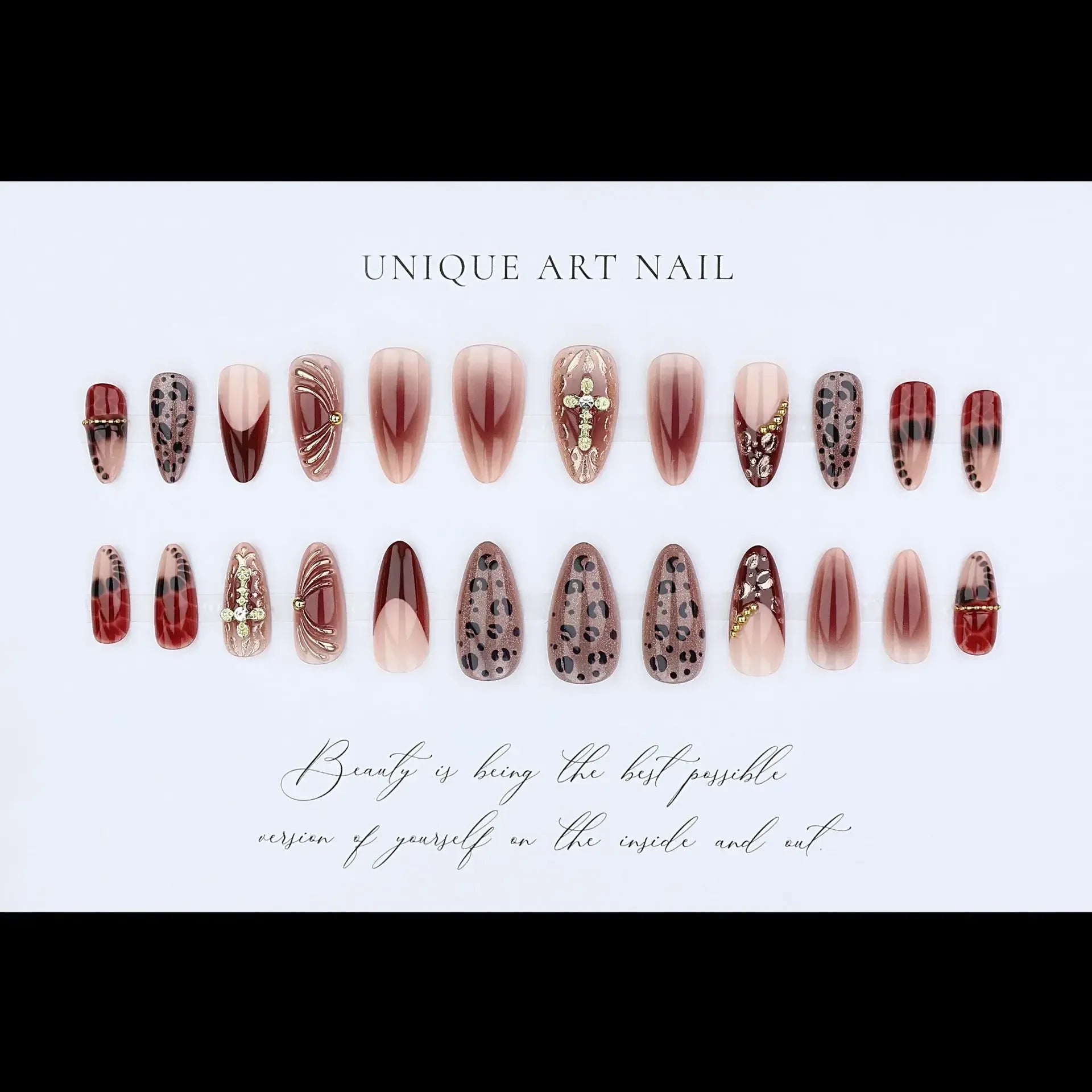 Turn heads with our 24 Pcs 3D Leopard Press On Nails – a bold mix of leopard print, polka dots and embossed flower nail art designed for confident, fashion-forward women.