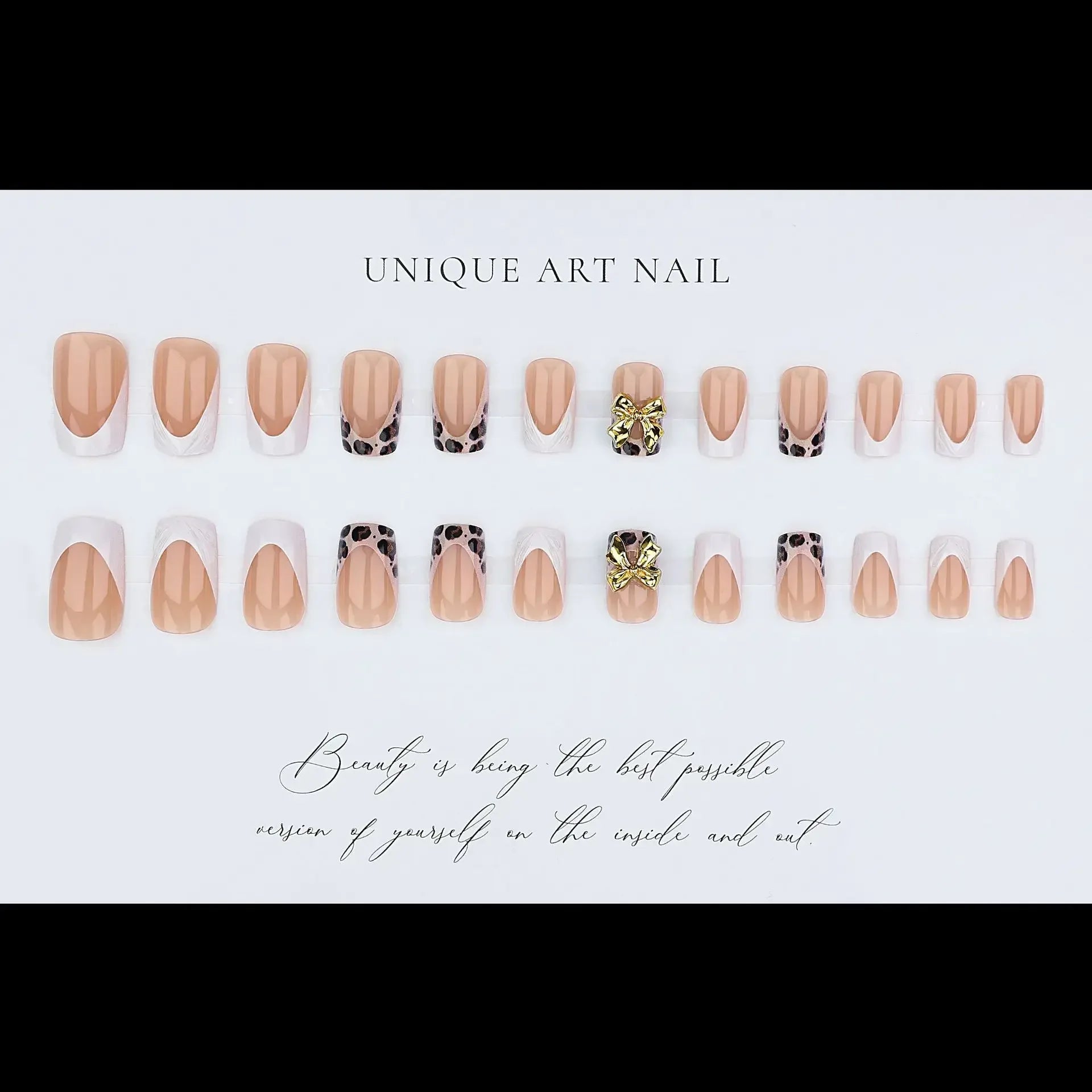 Turn heads with these 3D Leopard Flower Press On Nails, designed for bold, fashion-forward women and girls. This 24-piece set features a stunning mix of leopard print, floral patterns, butterfly and knot details with a classy French frame finish for a stylish, salon-ready look at home.