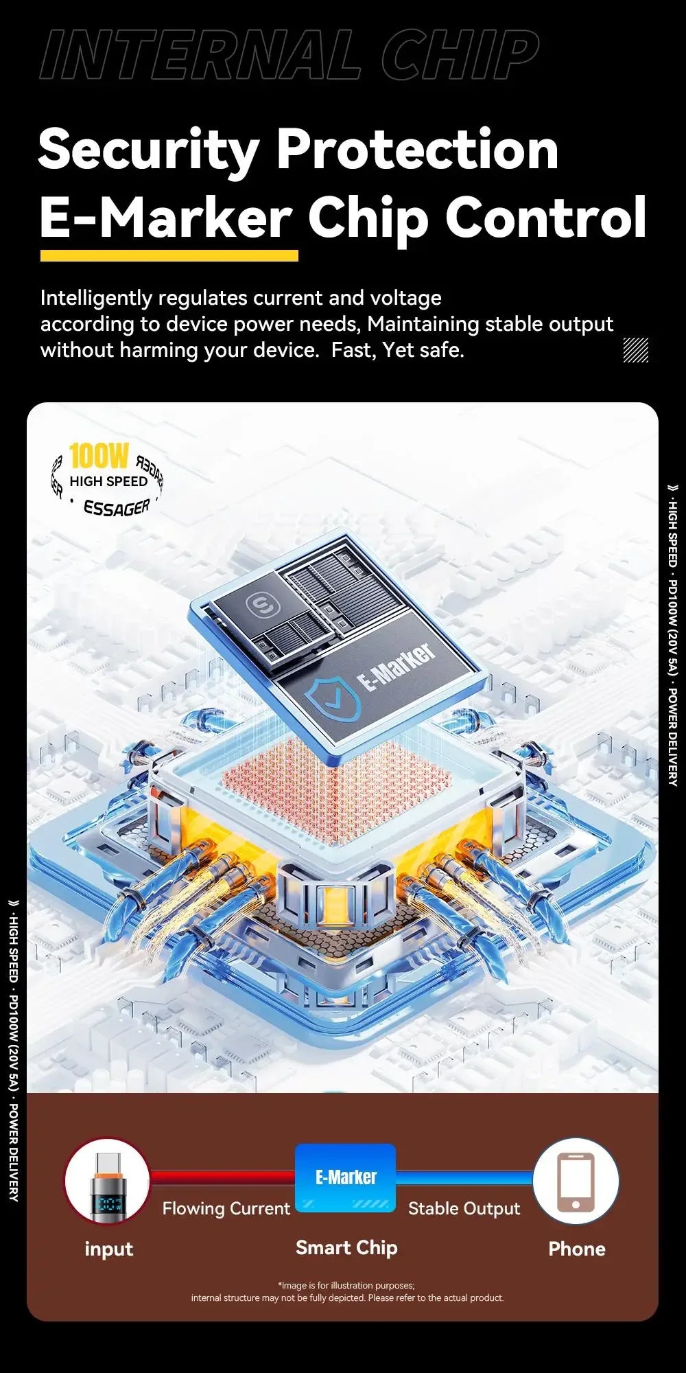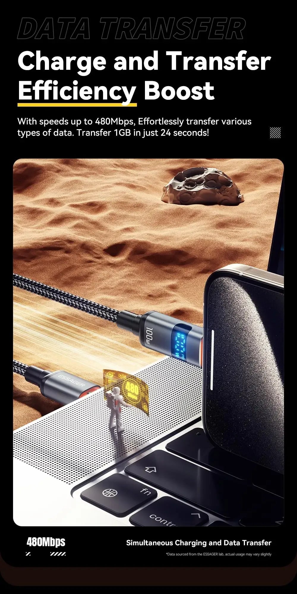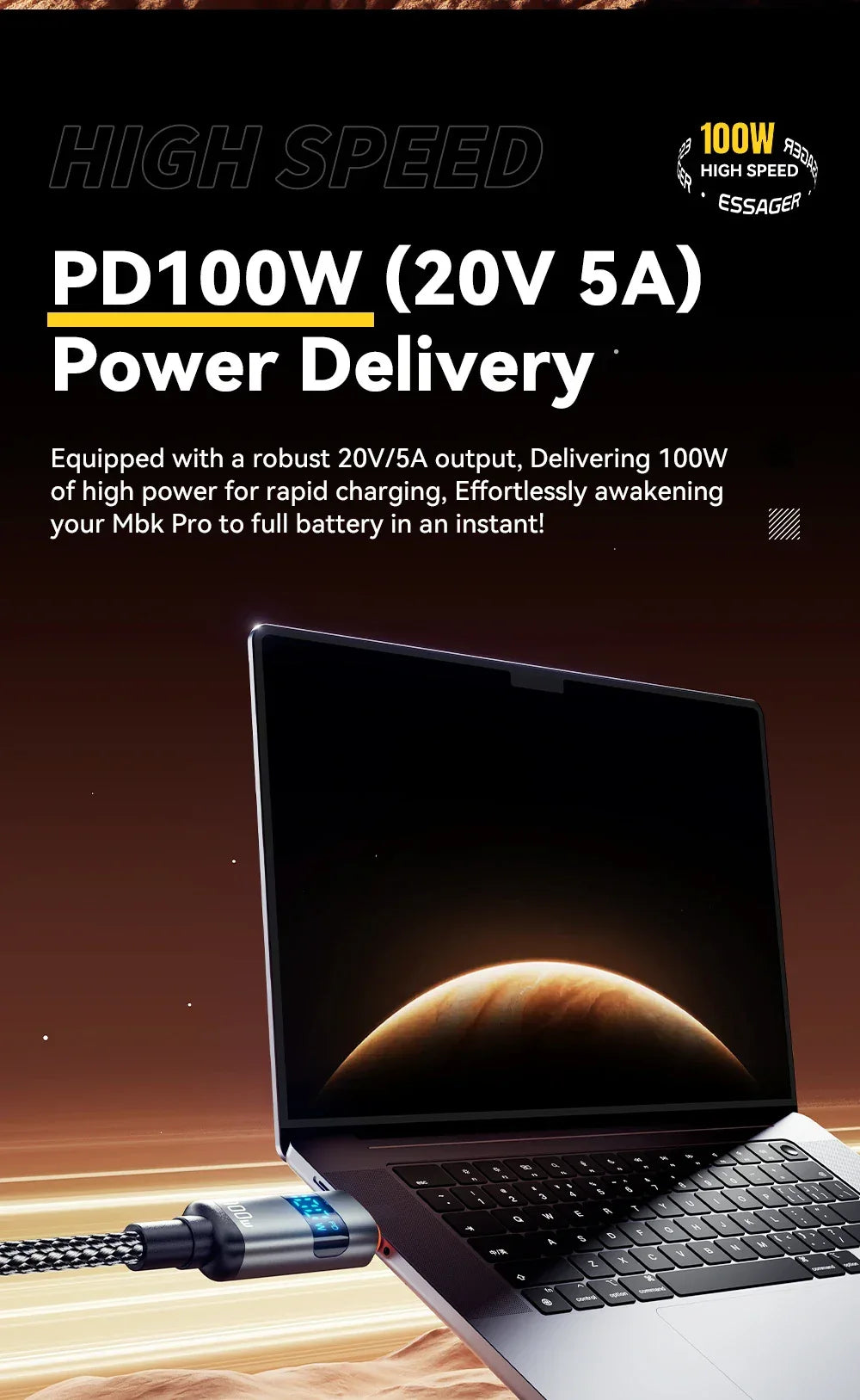 ESSAGER 100W USB-C to USB-C Fast Charging Cable – Digital Display Braided Data Cord
