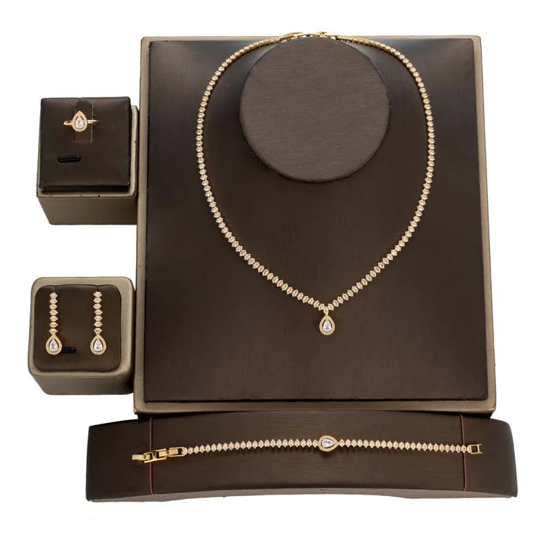 The set includes a necklace, earrings, bracelet, and ring — each perfectly matched to enhance your outfit with a cohesive, graceful sparkle. Lightweight yet durable, this jewelry set ensures long-lasting shine and comfort for all-day wear.