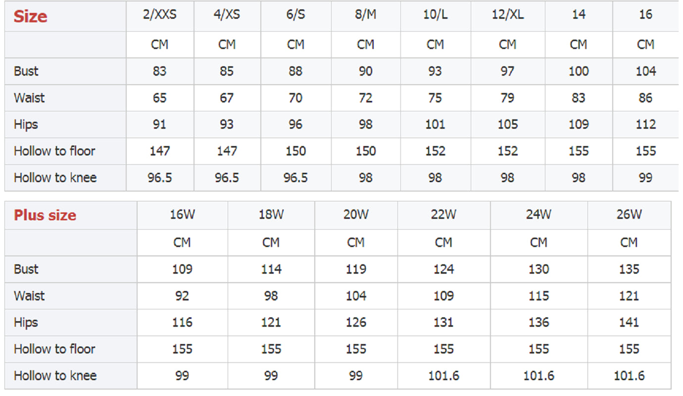For Custom Made Dress, please complete the format below and offer us when you place the order.