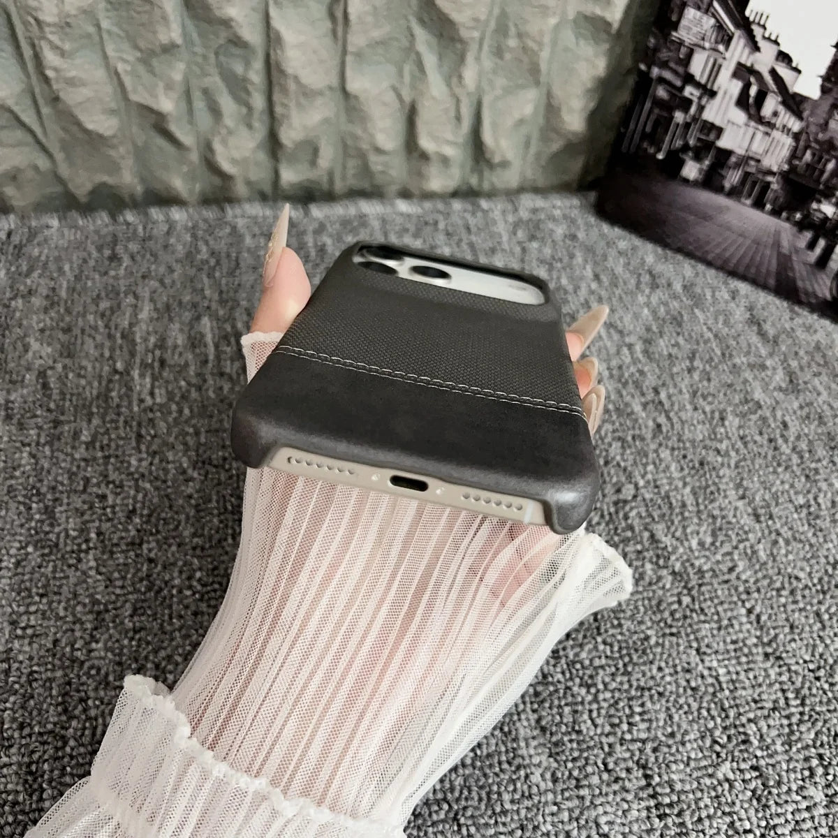 Luxury Leather Splice Business Phone Case For iPhone 17 Air / 16 / 15 Pro Max – Matte Weaving Frameless Shockproof Cover