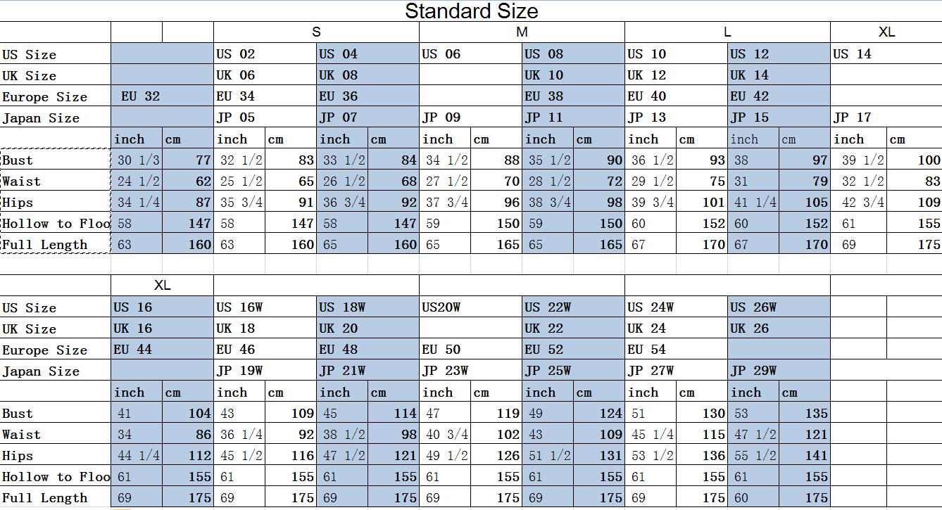 Please choose right size when you make order, you can refer this chart or you can send your measurements to us and we will give you suggestion. Please feel free to contact us.Thanks